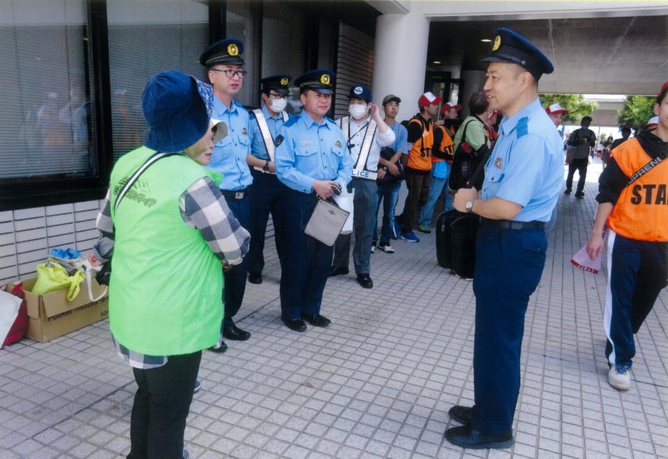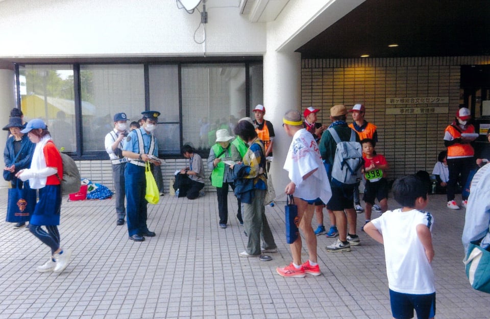9月28日(日)伊南防犯連合会と駒ヶ根警察署は、信州駒ヶ根ハーフマラソンの表彰式会場において、長野県内で被害が続発している「電話でお金詐欺(特殊詐欺)」被害防止のため、防犯女性部赤穂地区員と駒ヶ根警察署長以下署員が「チラシ・ウエットティッシュ・反射材付キーホルダー等」を手渡しながら街頭啓発活動を実施しました。