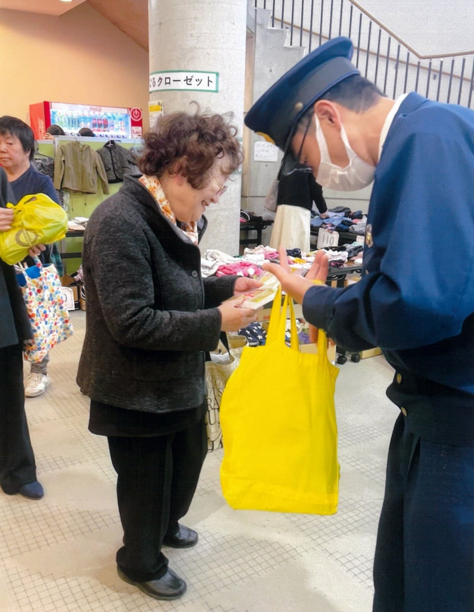 樋口さんは行き交う人に「詐欺被害にあわないよう注意してください」などと声をかけながら防犯意識の高揚を訴えていただきました。