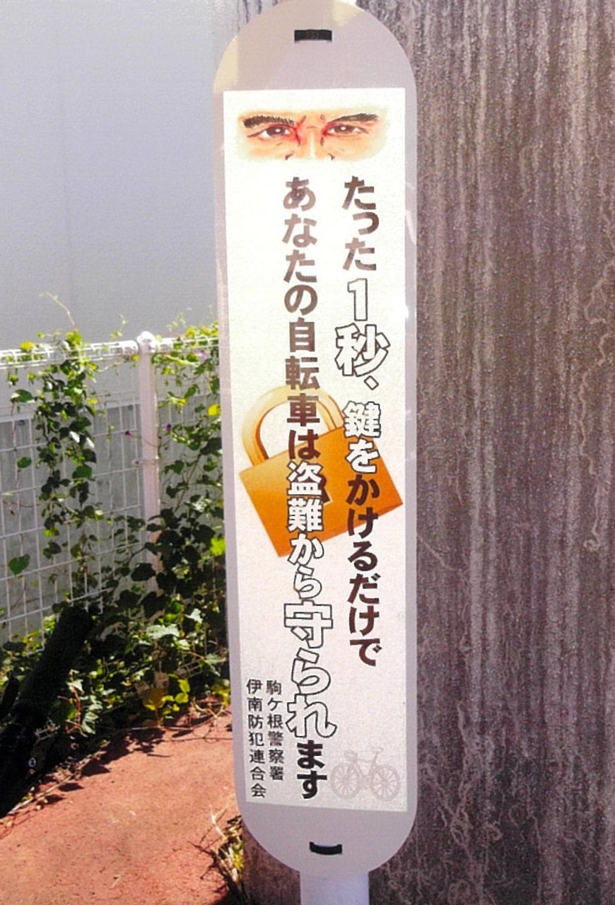 10月20日(月)伊南防犯連合会と駒ヶ根警察署は、JR飯田線の「駒ヶ根市駅」「小町屋駅」「伊那福岡駅」の3駅に自転車盗難被害防止のため「防犯プラカード(写真参照)」を制作して掲示しました。自転車の所有者の皆さん!。