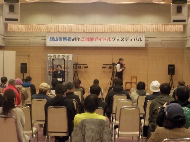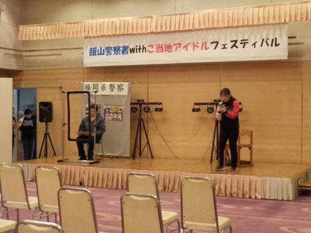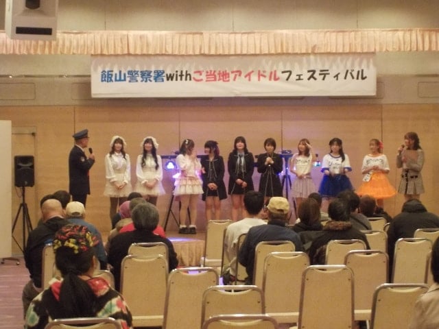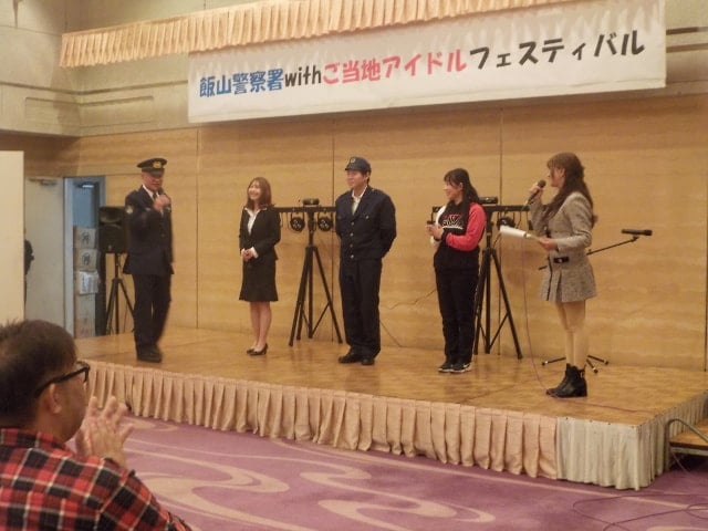 11月3日(月)飯水岳北防犯協会と飯山警察署は「飯山警察署withご当地アイドルフェステバル」を開催しました。このフエステバルは、いいやまえびす講祭りの一環として開催されたもので、信州ご当地タレントの「成美」さん、俳優・飯山市観光大使の「新保広恵」さん、信州ご当地アイドルの「りなち」さんが「電話でお金詐欺(ニセ警察騙り)の寸劇」を披露し、訪れた市民や観客に対して被害防止を呼びかけました。